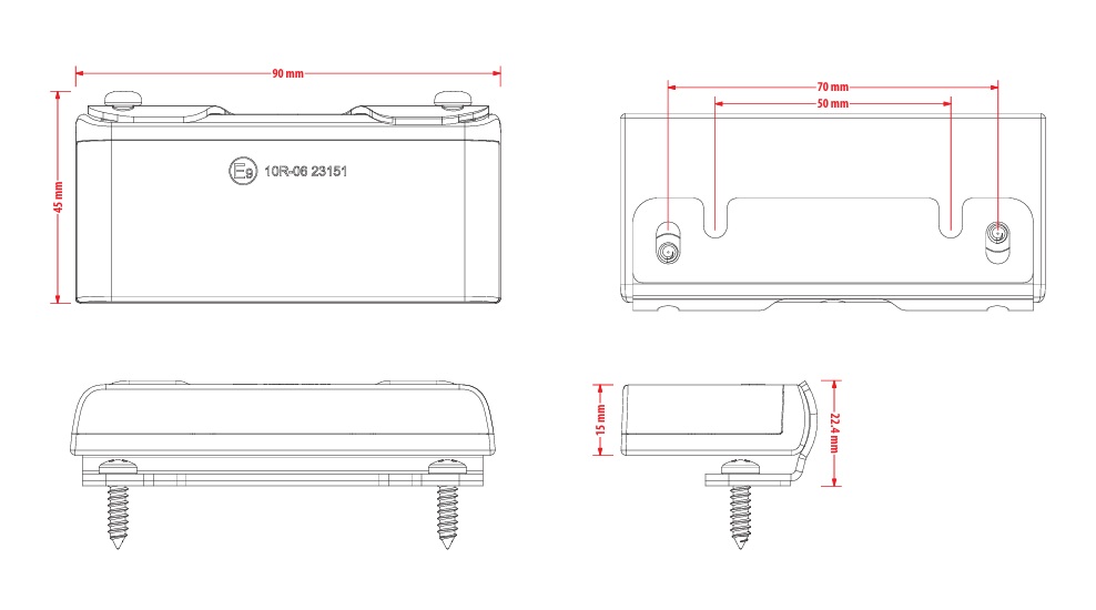 | Mått (L × H × B) | 90/15/45mm |